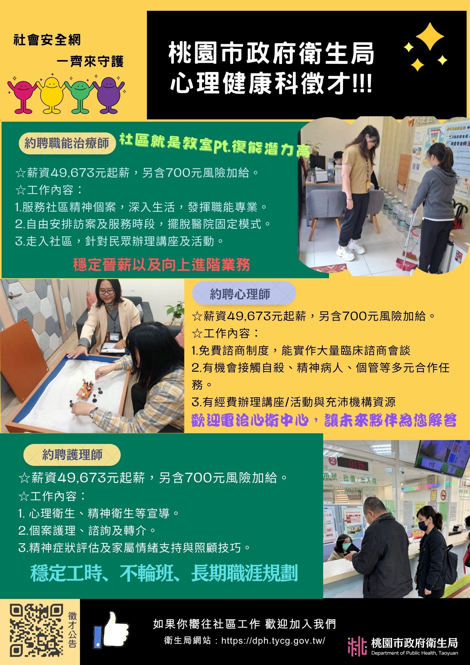 【徵才】桃園市政府衛生局心理健康科誠徵|約聘護理師