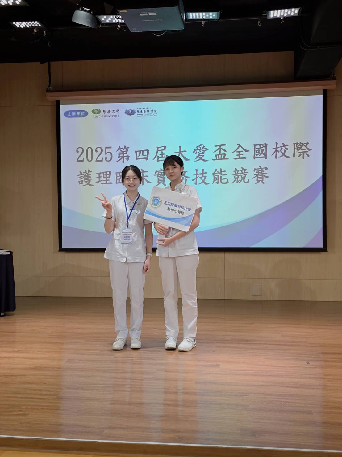 本系日二技2-1同學蔡宜庭、吳芸萱在任瑋瑄 指導老師帶領下,於12月5日參加「大愛盃全國校際護理臨床實務競賽」之「護病溝通」組,在全國眾多參賽隊伍中表現亮眼,以隊名「勤樸心聲對」呼應學校校訓精神,展現溫暖、精準且具專業同理的臨床溝通能力,最終脫穎而出,勇奪全國第二名佳績。