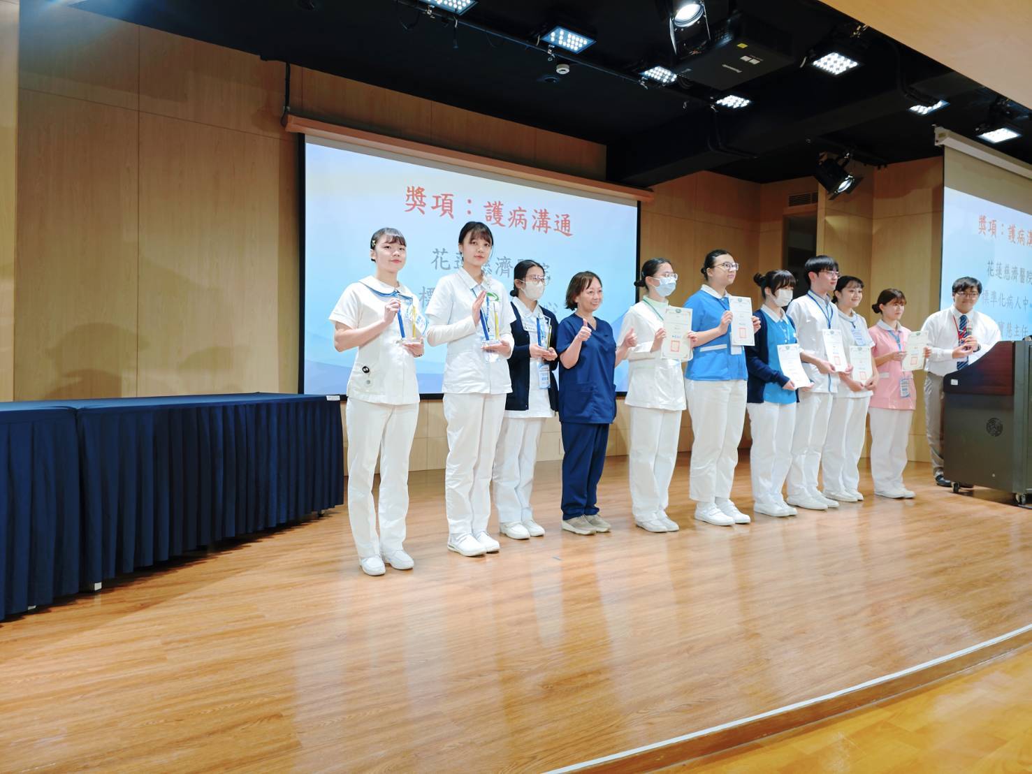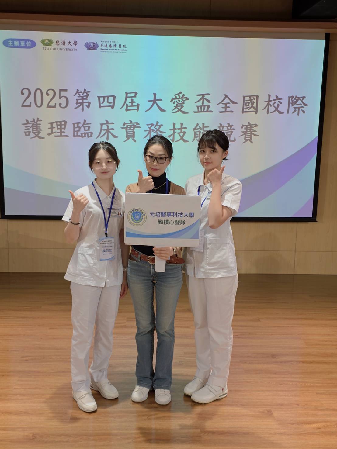 本次競賽強調護理人員在臨床情境中的即時應對、情緒支持及有效溝通技巧。兩位同學在比賽過程中展現穩健的臨床思維與細膩敏銳的溝通能力,不僅充分掌握護病之間的互動需求,更以真誠態度感動評審,獲得高度肯定。