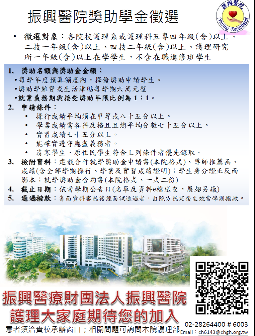 【獎助學金】振興醫院徵才獎助學金活動|自行交件申請至115/3/20